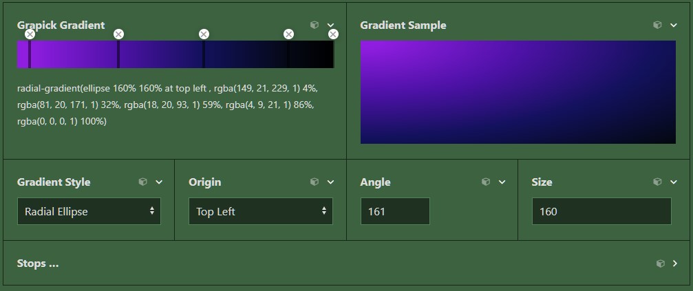 I’ve added full support of different gradient types and size, and allowed for more flexible gradient origins for relevant types.