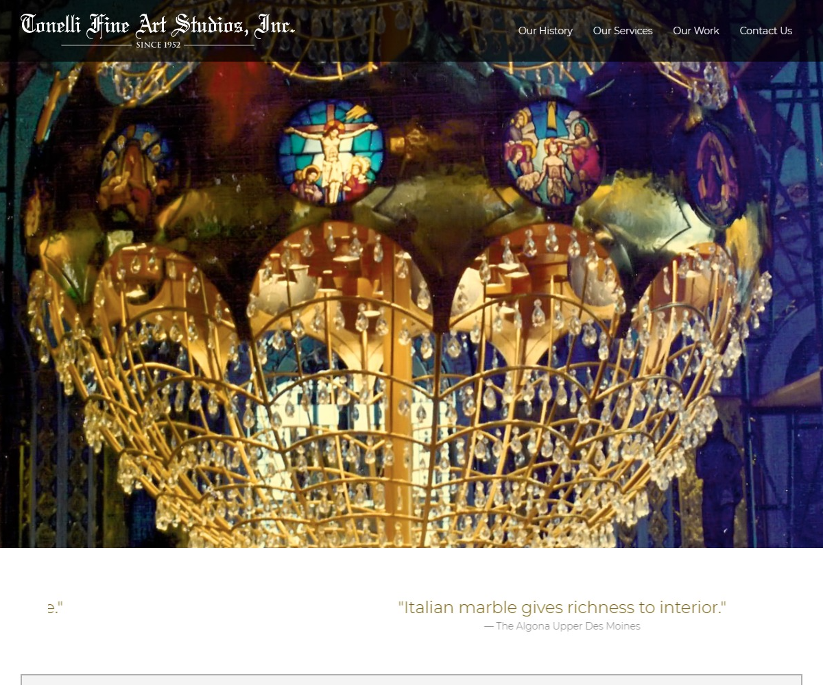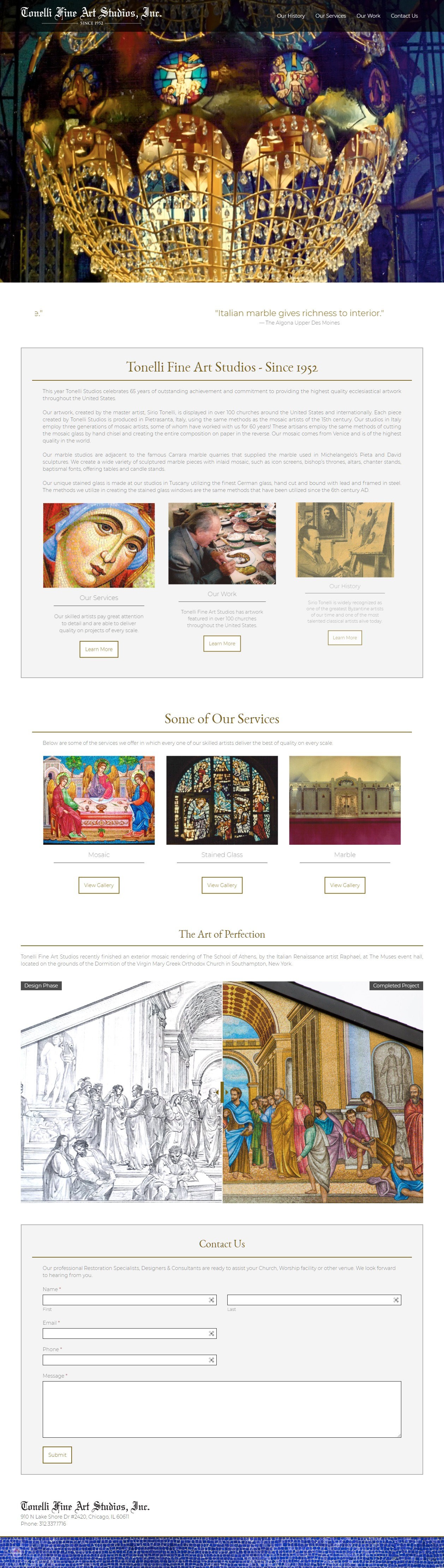 The main site we built for Tonelli was a straightforward WordPress design with a number of features that appealed to the fine artist: