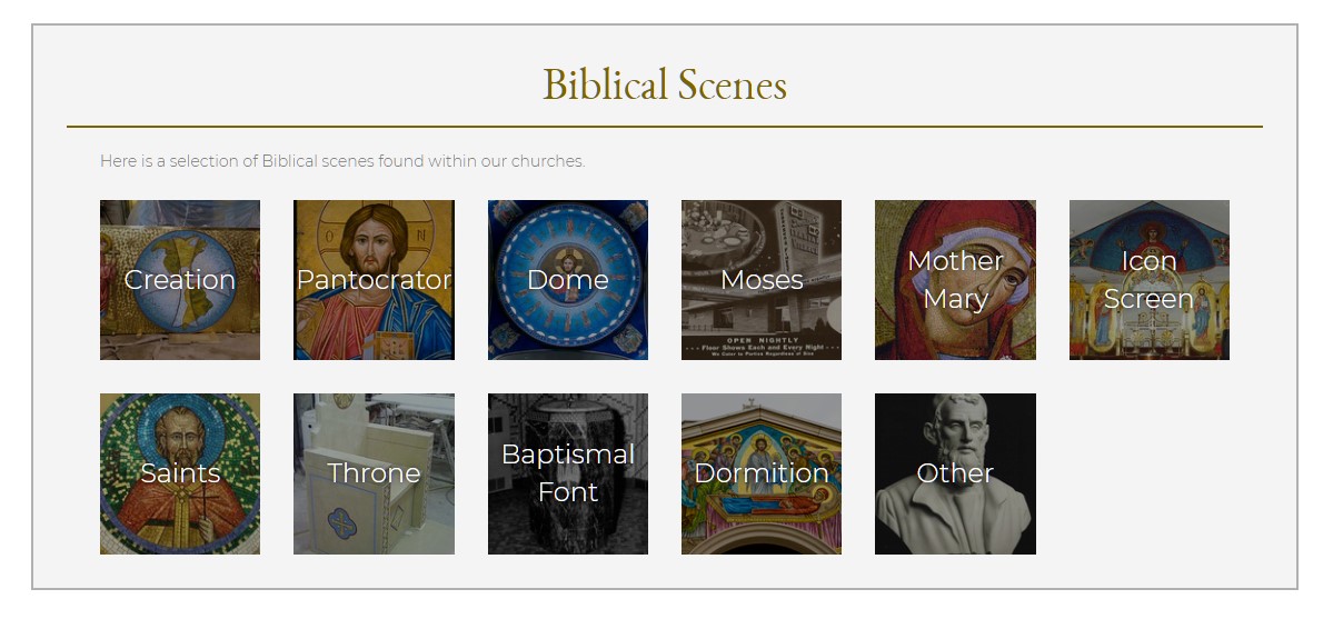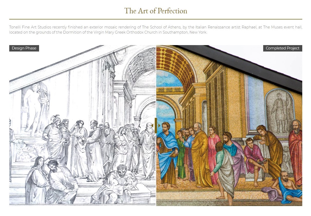 - A transition before/after photo illustrating the planning and final installation of his iconography